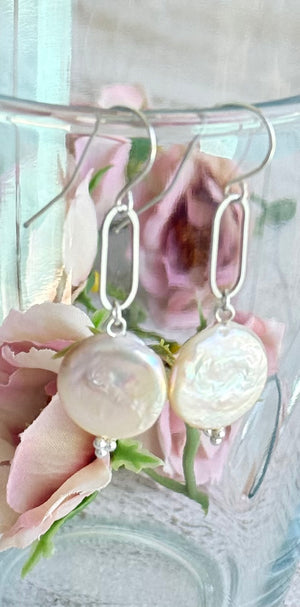 This beautiful earring combines the modern paperclip element with the elegance of coin pearls. Made with sterling silver, its great to pair with any ourfit.